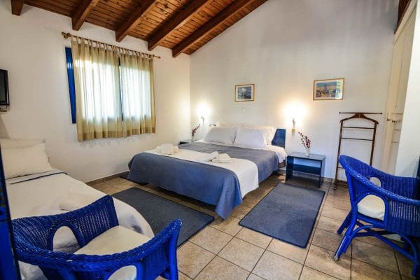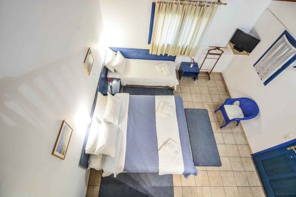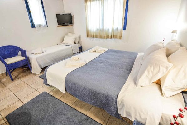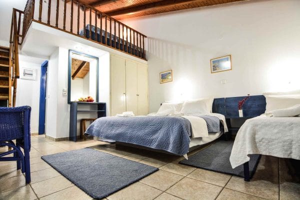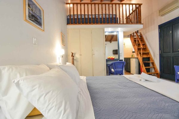 Μεζονέτες ( περίπου 30 τ. μ. ) διπλό κρεβάτι στο ισόγειο, μπάνιο με ντουζιέρα και μονό κρεβάτι στη σοφιτούλα. Air-condition, tv, ψυγείο.