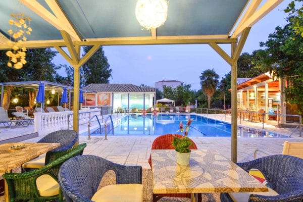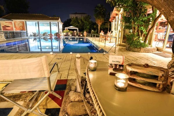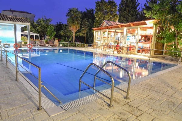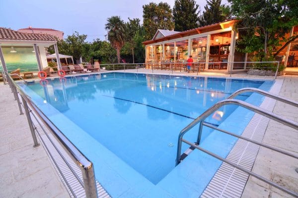 It is surrounded by many sunbeds, sofas and tables where you can relax and enjoy your refreshments, drinks, cocktails and snacks, accompanied by the relaxing music of the pool bar.